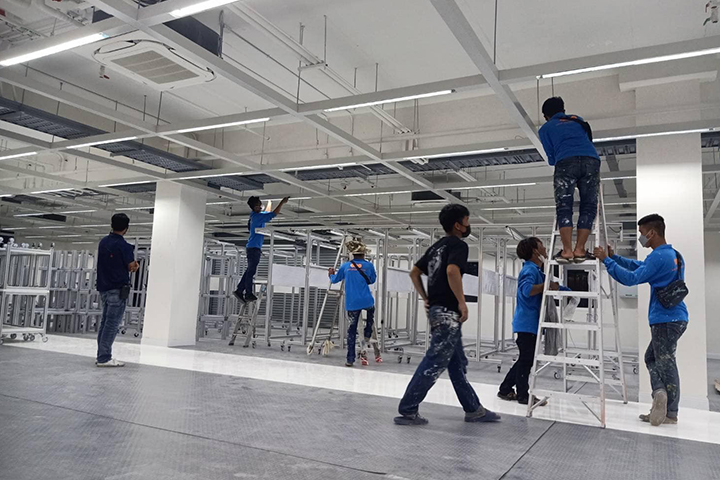 งานทาสีภายในทุกชั้น บริษัท ระคุ นิคมอุตสาหกรรมเจมโม